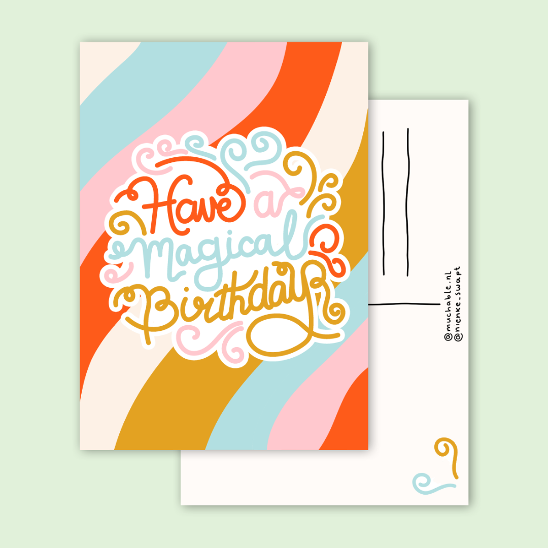 Een vrolijke en kleurrijke kaart met tekst, gedrukt op 330 grams mat papier. Deze kaartjes zijn leuk om te versturen, maar ook zeker leuk om op te hangen of in te lijsten.