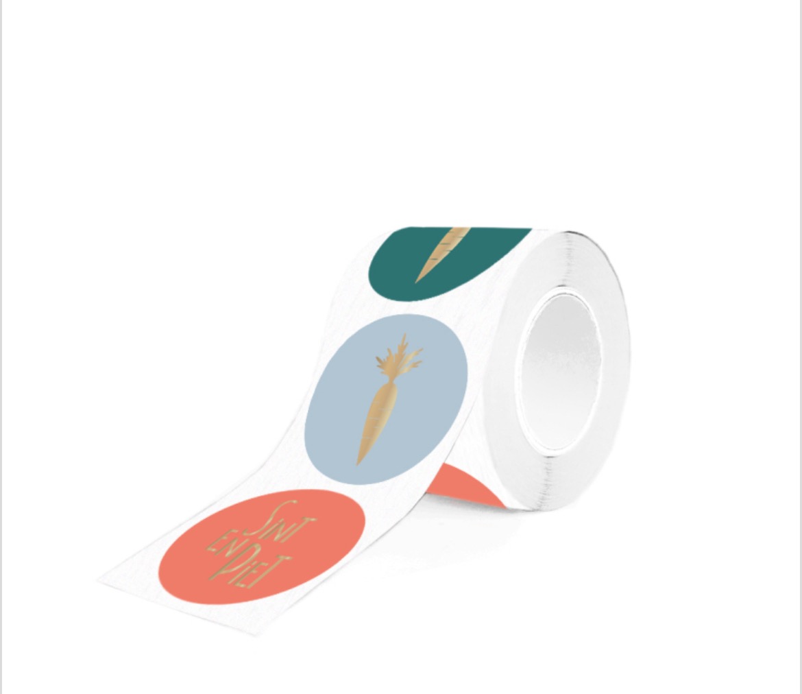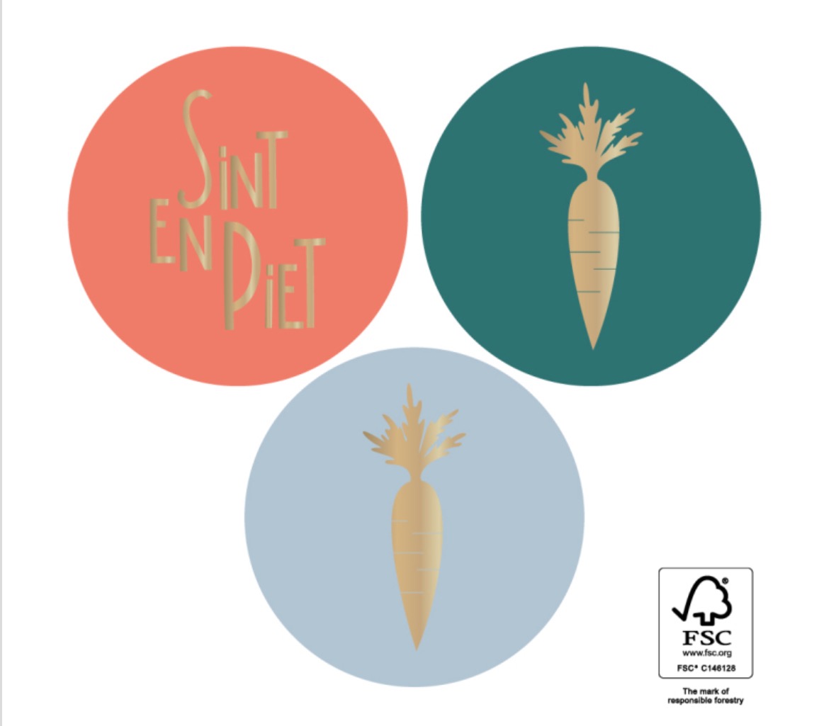 Een grote Sinterklaas sticker/ sluitzegel met in goudfolie wortels en de tekst, Sint en Piet! In oranje, groen en blauw. Zo maak jij je Sinterklaas cadeautje of surprise helemaal af in stijl.